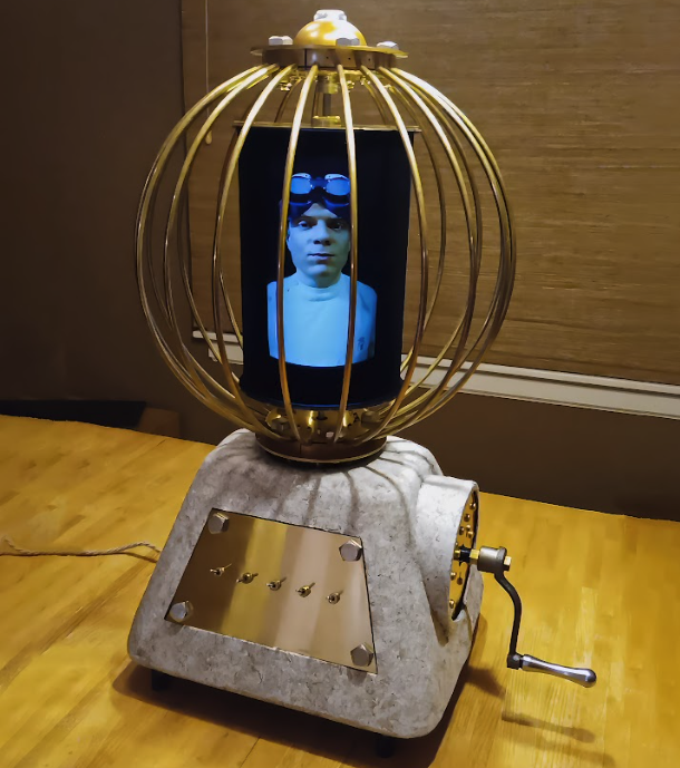 Mike Ando loves making things in his spare time, and uses a Raspberry Pi “because they’re so easy and save me time implementing things”. Even so, he’s just spent eight months designing his own take on Gehn’s holographic imager from the game Riven, the sequel to puzzle adventure Myst. As well as displaying images and playing video clips, it can be used for video calls and games. “Basically, I’ve brought a 150-year-old children’s toy into the 21st century.” Actually, the Australian systems administrator has created two such ‘andotropes’. The second version uses Pico W which is much smaller and cheaper and doesn’t use so much expensive and heavy brass, but The MagPi was especially taken with his original, Raspberry Pi 3 model which requires no CGI or other visual trickery and uses two back to back 10in tablets