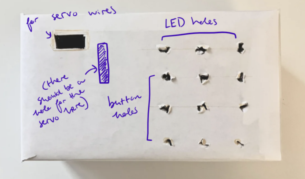 - Servo motor so the device can pie losing players (modelled by a balloon in the build video) in the face