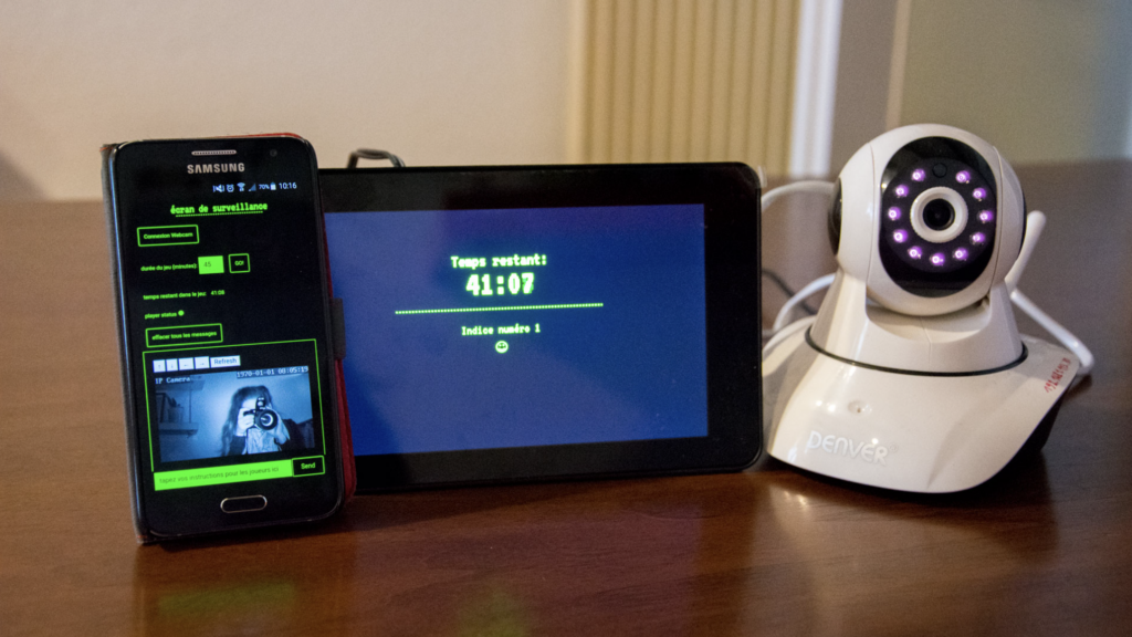 She says the aim was to create a simple, affordable escape room monitoring system. The escape room owner, Mathieu Dorsaz, wanted to be able to see the players enclosed in a room and communicate with them via a chat if necessary. The escape room was located inside a minivan whose location frequently changed (players rented the escape room van, parked up and played wherever they chose). Caroline’s first big task was therefore creating an offline communication system using Raspberry Pi to create a local network.