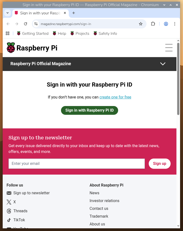 Contributions are linked to a Raspberry Pi ID, so you will need to set up one of these — if you are already using Raspberry Pi Connect, you can use the same ID, in which case you can simply log in with your existing username and password.