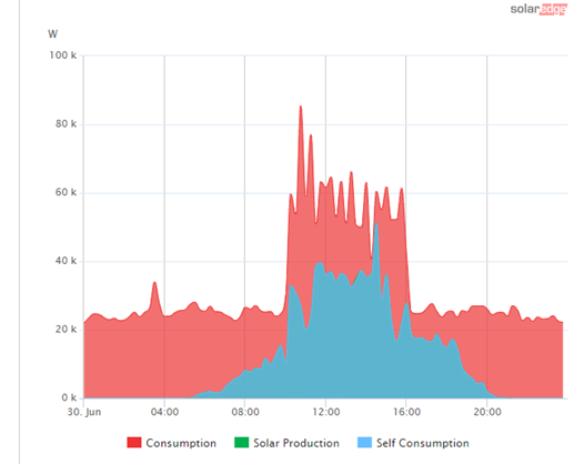 Since installing a fleet of rooftop solar panels in June 2024, we’ve managed to reduce our electricity consumption by 20%. The 85.5 kW East–West array, with its 66.6 kW inverter, currently covers 33% of our electricity use. While long, sunny days provide ample energy for us, the heat they bring also increases the demand for air conditioning, which is both costly and energy-intensive; we expect our solar energy coverage to fluctuate with the seasons, averaging out at 20%.