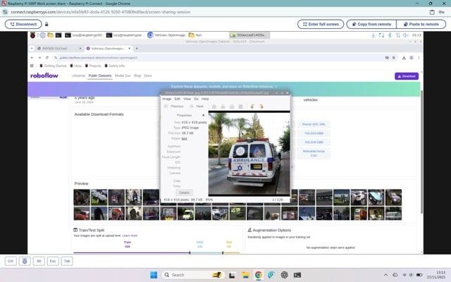 Click ‘Upload’ and choose an image from your Raspberry Pi OS file system. The image will appear in the car dataset (as in Figure 4).