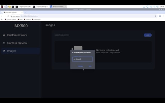 It is also possible to use the GUI Tool to automate image capture directly from a camera attached to your Raspberry Pi. If you have a Raspberry Pi AI Camera connected, you can also gather input tensor data alongside the raw image.